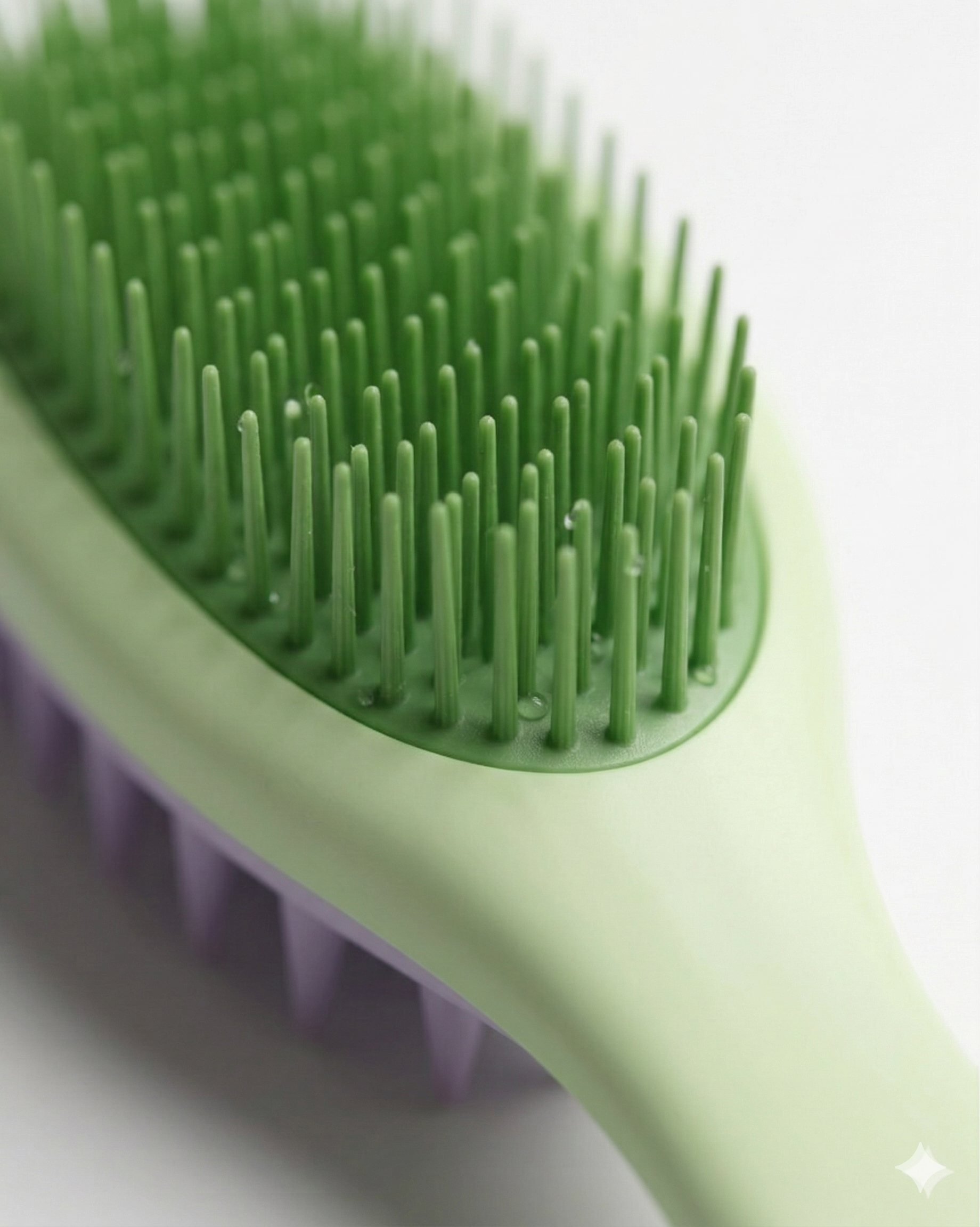 The detangling side is designed to glide through the hair more gently than a standard brush, which can help reduce unnecessary pulling and breakage.