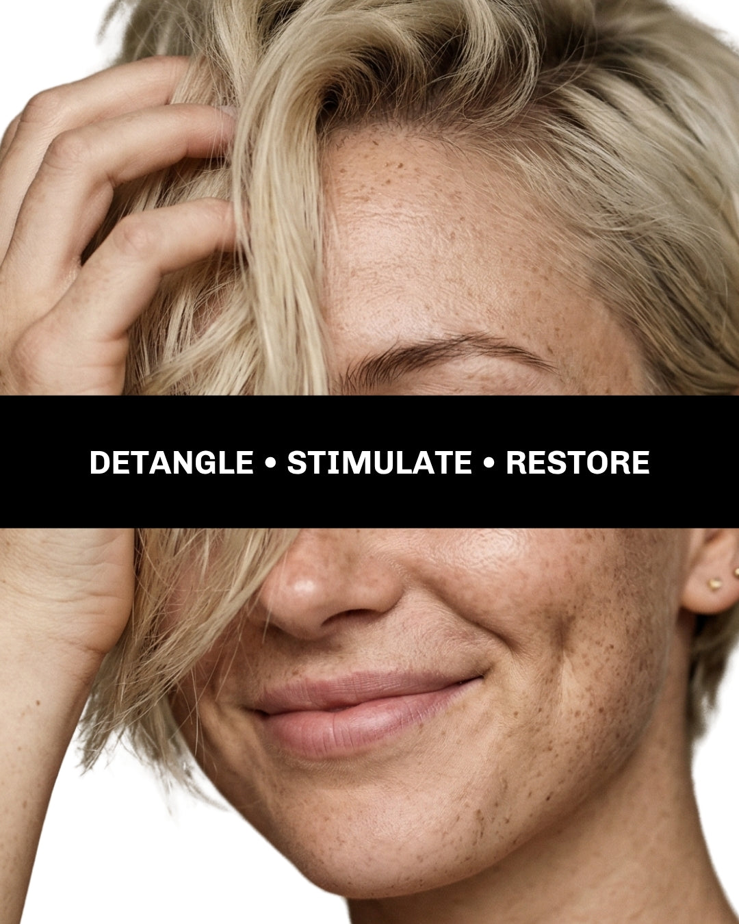 The Knot Free Duo is designed with two functions in one tool: one side gently detangles, while the other provides soothing scalp therapy. It turns a simple routine into a more intentional hair care ritual.